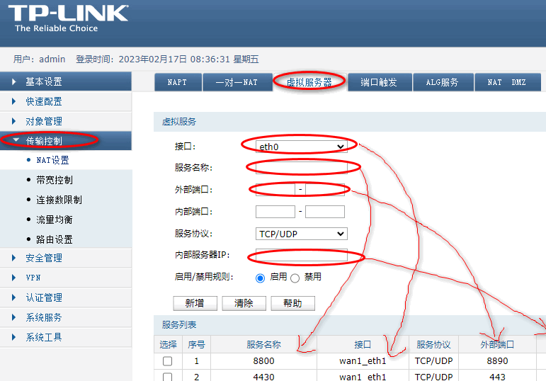 | 5 | OA服务器web | wan1_eth1 | TCP/UDP | 8081 | 8080 | 192.168.0.107 | 已启用 |